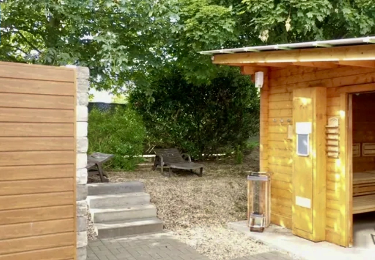 Erholung nach dem Training und Schwitzen für die Gesundheit. Entspannung und Idylle an der frischen Luft inklusive in unserem Sauna-Außenbereich. Genieße die wohltuende Ruhe!